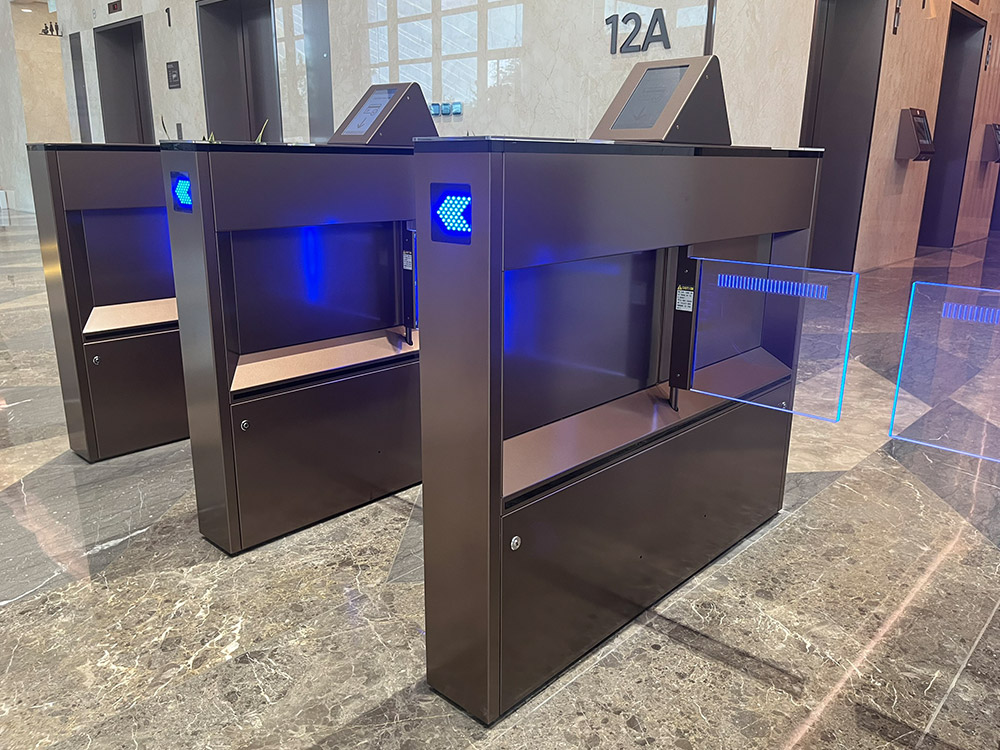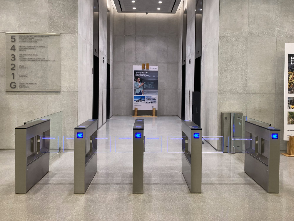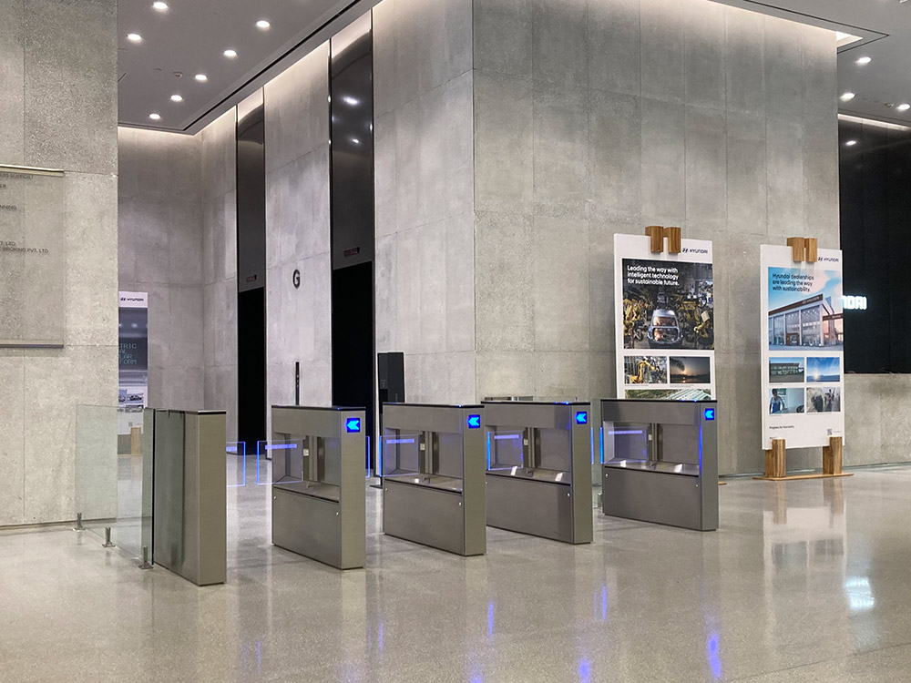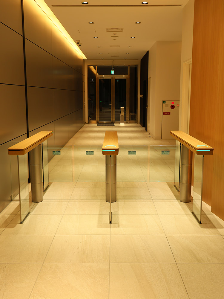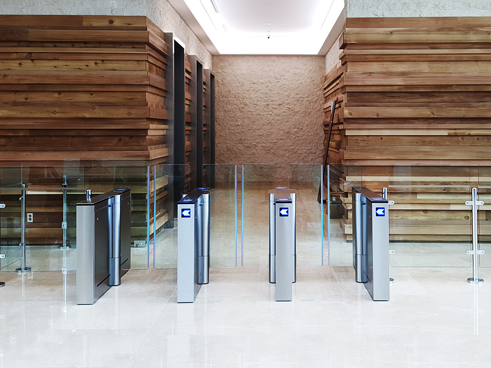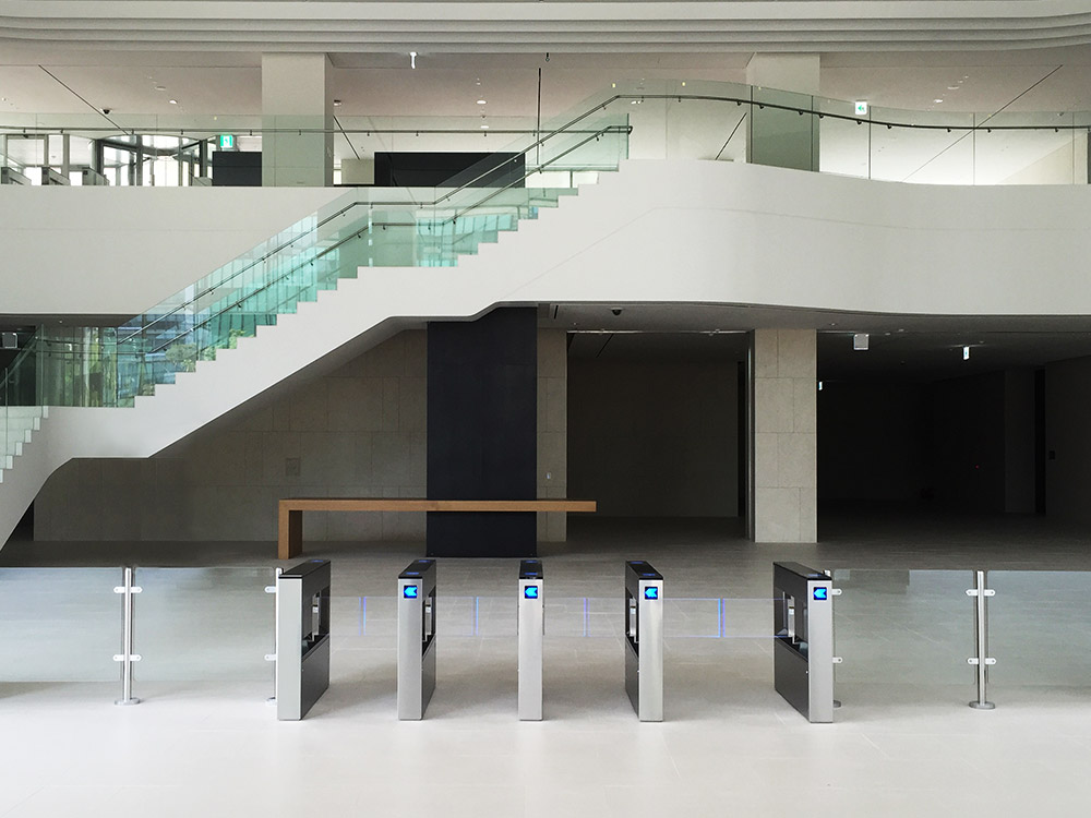 A security gate that seamlessly blends into any space. Designed with the concept of compactness and simplicity, its design harmonizes with various environments without the need for specific installation spaces. Additionally, it allows for a strict distinction between public and confidential areas.