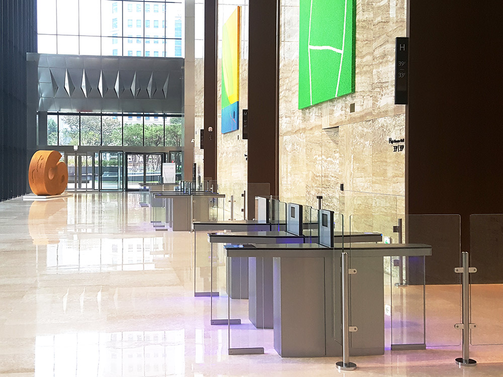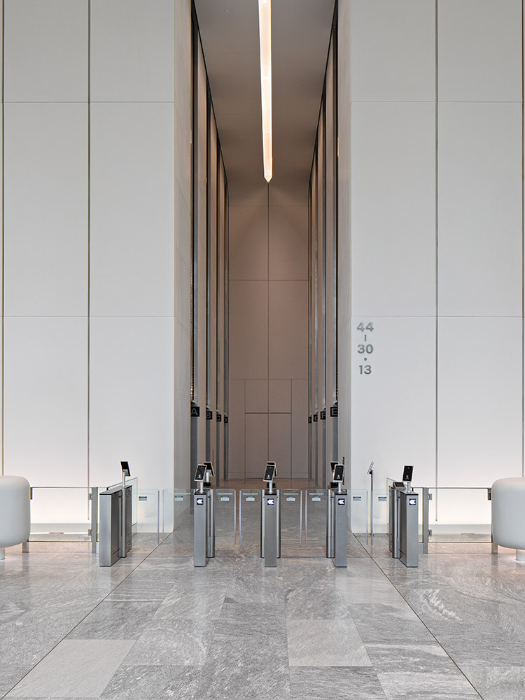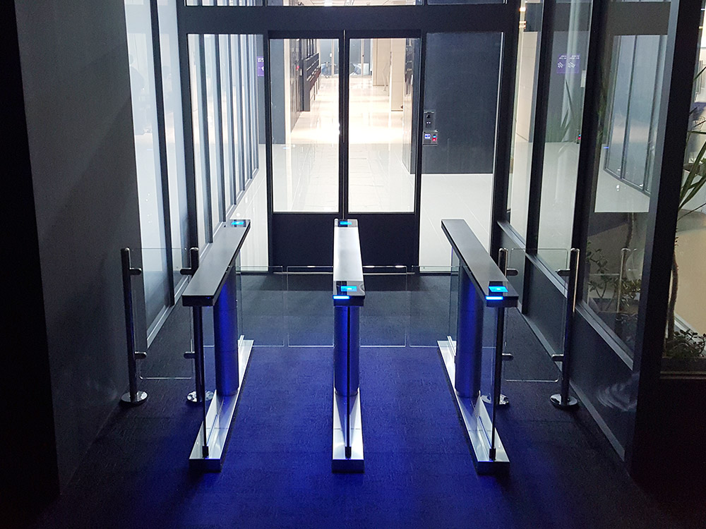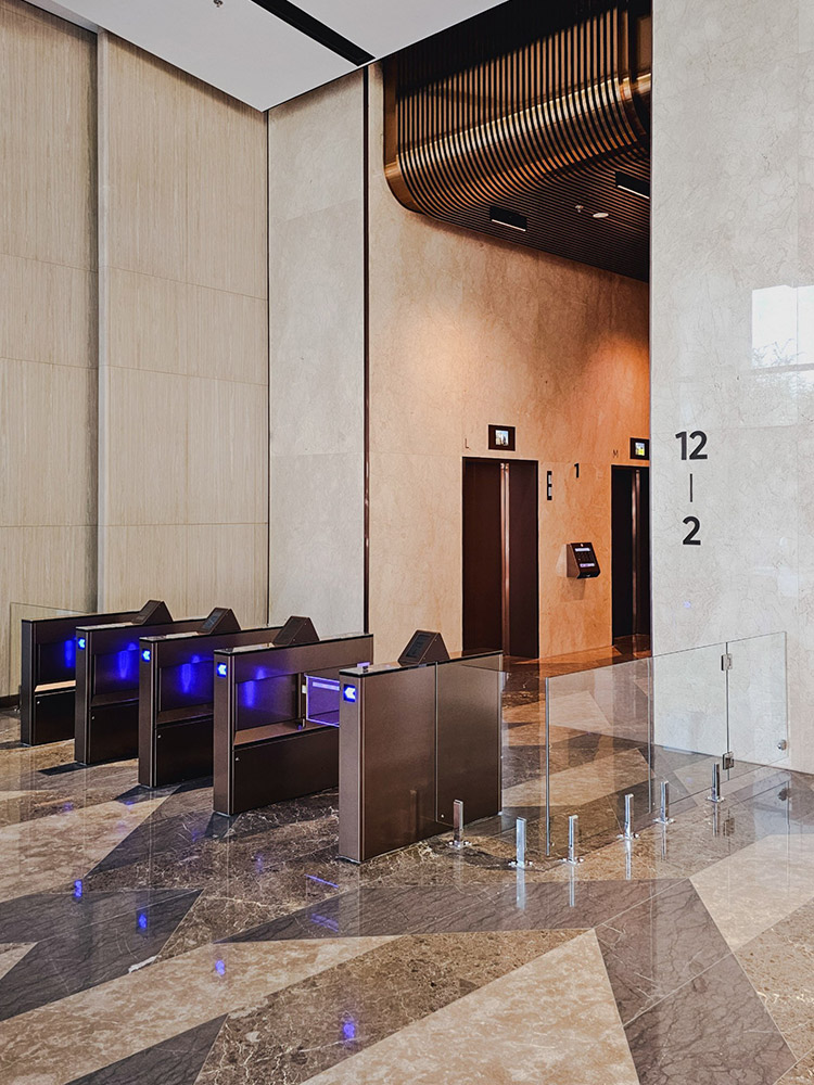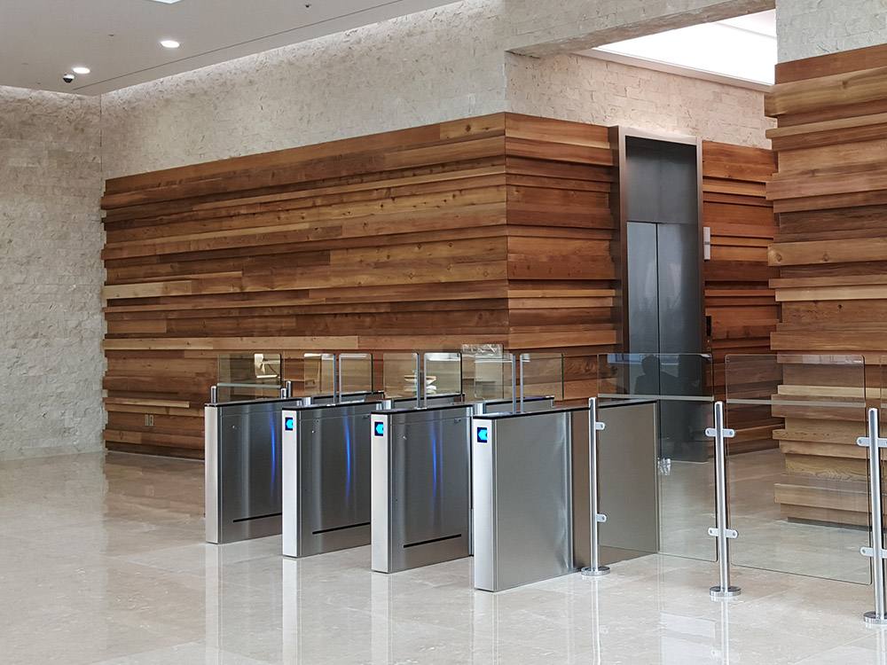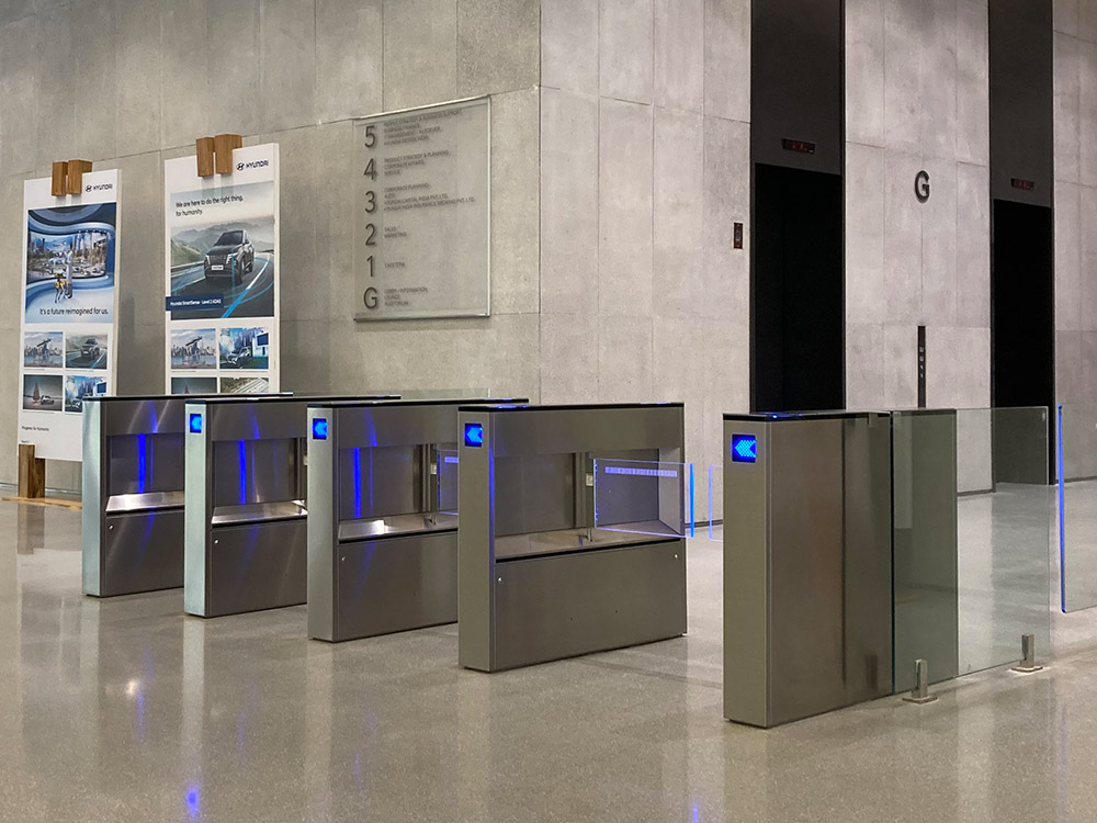 A security gate that seamlessly blends into any space. Designed with the concept of compactness and simplicity, its design harmonizes with various environments without the need for specific installation spaces. Additionally, it allows for a strict distinction between public and confidential areas.